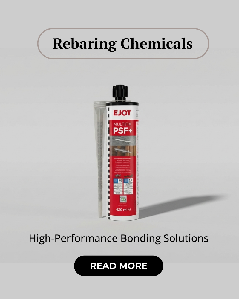 The trusted partner in quality building solutions. We specialize in European Anchor Fasteners, Rebaring Chemicals, Waterproofing Chemicals, and Slim Door & Window Hardware. Our services include Rebaring, Anchoring, Waterproofing, and maintenance of slim doors & windows.